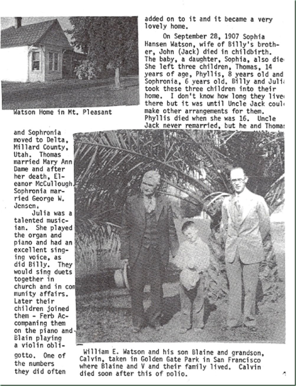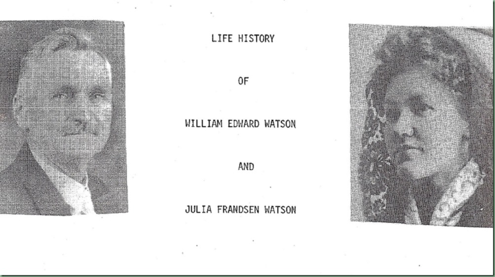 Life History of William Edward Watson and Julia Frandsen Watson~~~~ Pioneers of the Month September 2018