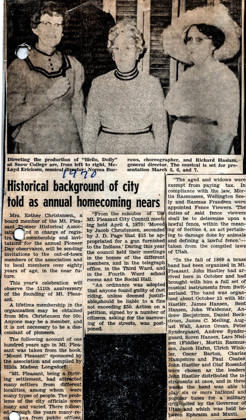 Mt. Pleasant Awaits Pioneer Day 1970 ~~~ Twenty Five 80 Year Olds Were Honored~~~ (taken Louise Johansen's Scrapbook)